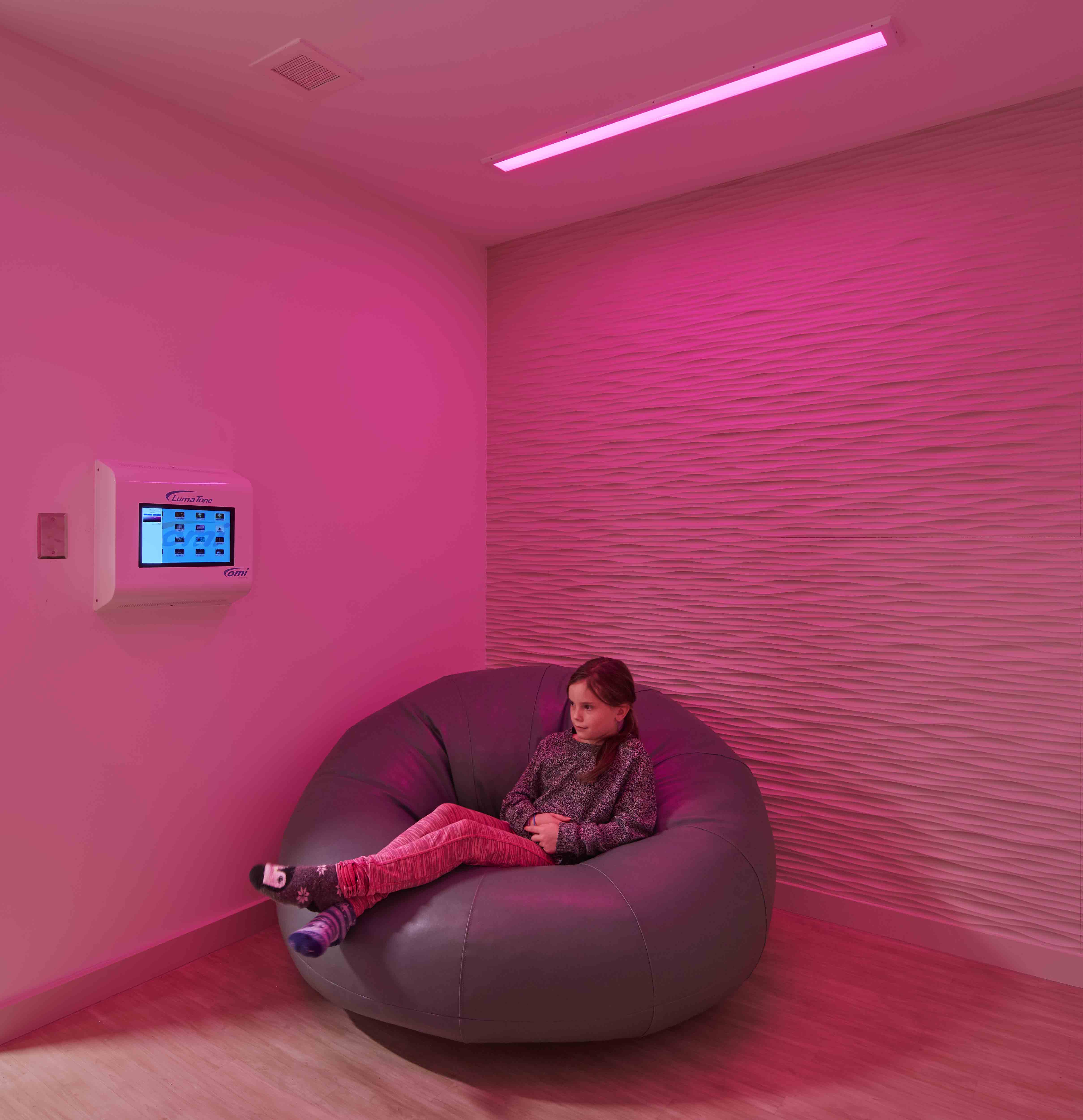 As planning, architecture, and interior design partner, Mohagen Hansen and human eXperience curated spaces that actively reduce stress and support stabilization through clear wayfinding, restorative lighting strategies, durable yet calming material palettes, and a thoughtfully sequenced spatial flow. The facility includes welcoming community areas, flexible therapeutic spaces, and a dedicated sensory room with adjustable color and audio controls to support self-regulation and de-escalation. Design decisions were informed by trauma-responsive principles, ensuring spaces feel supportive rather than institutional while maintaining appropriate levels of security. Now open and serving the community, the Center demonstrates how intentional adaptive reuse and empathetic design can transform existing buildings into environments that meaningfully support care, recovery, and long-term well-being.